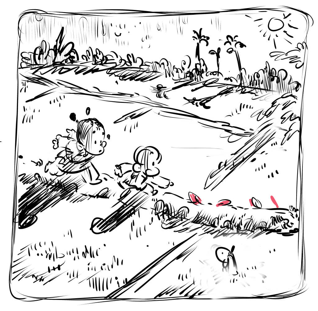 As for projects wherein I am both the author and illustrator, whether picture books or comics, it mostly starts with numerous doodles of characters. This is usually followed my numerous rounds of storyboards which may also include texts depending on the nature of the story. It is only after I have finalised everything in the storyboard phase, I go on to produce style frames that would determine the look and feel of the story. Character development and designs may happen simultaneously at this stage. The final artwork then is mostly about maintaining consistency in style throughout the book.